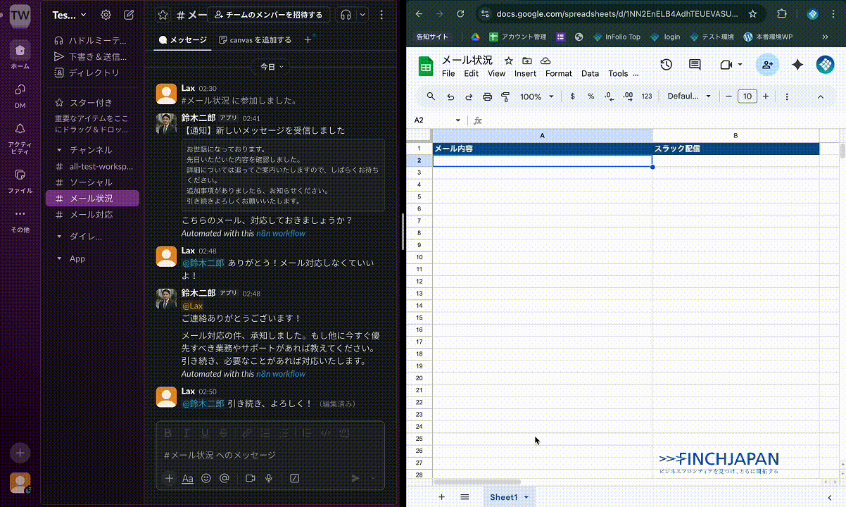 このように、人が行っていた一連の作業が、n8nで設計した順番に自動で動きます。
